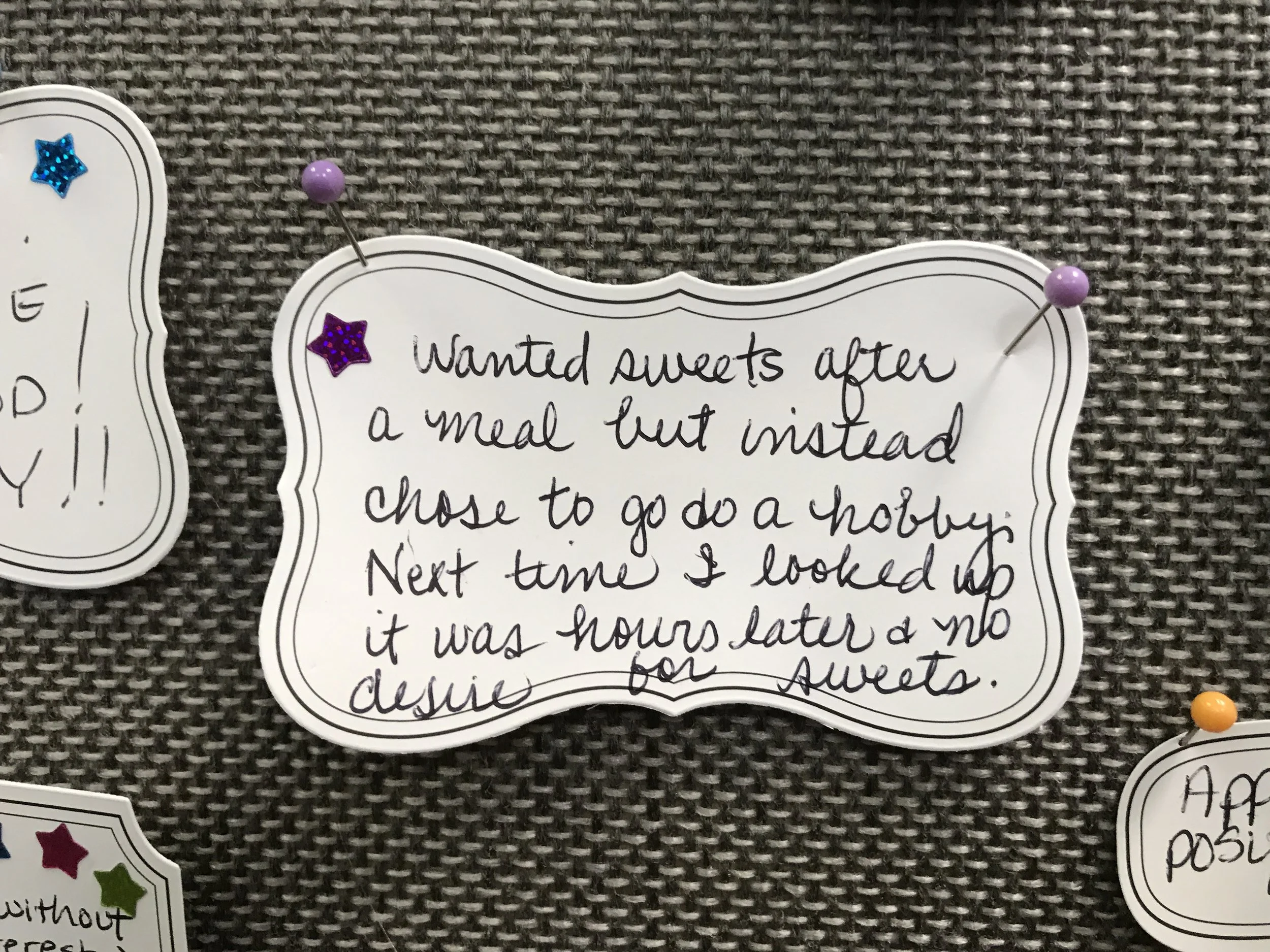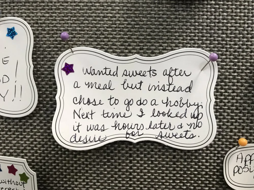 The Hypnosis Success Board showcases genuine achievements from clients on their path to freedom and success. We began with our original hypnosis success board, illustrated below, and have since expanded to four boards! This serves as an inspiring way to highlight victories, both big and small, and clients eagerly anticipate contributing their successes to the board. Explore these milestones on the journey and remember that recognizing incremental success is a valuable skill. As you focus on what is working, everything else tends to fade away, so shift your efforts towards the positive outcomes.